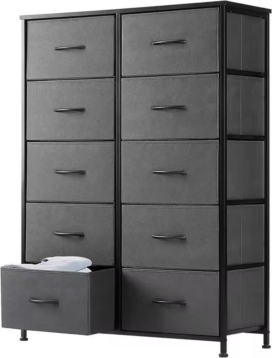 10-Drawer Fabric Dresser Tall Storage Tower, Metal Frame Chest of Drawers