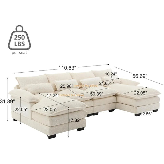 110" Sectional Sofa for Living Room – Modern Chenille U-Shaped Modular Sleeper Couch with Double Chaise & Memory Foam