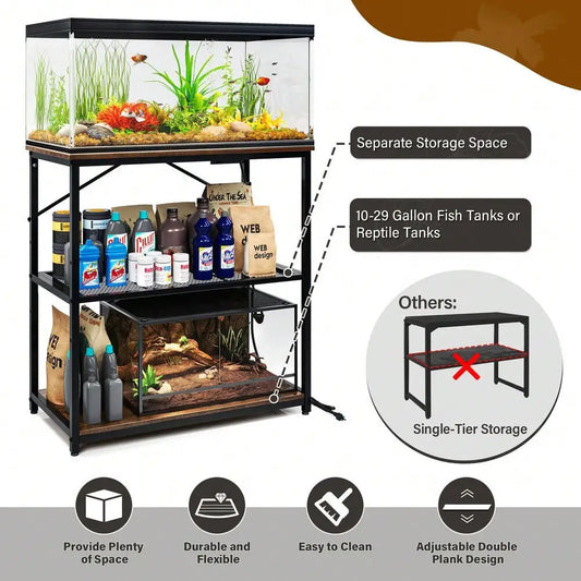 10-30 Gallon Adjustable Fish Tank Aquarium Stand with Built-in Charging Station – Durable & Convenient