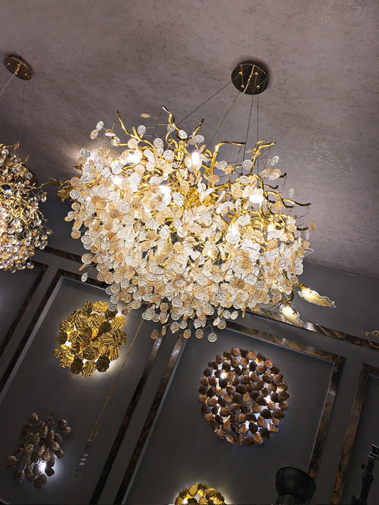 Golden Petal French Crystal Nest Chandelier