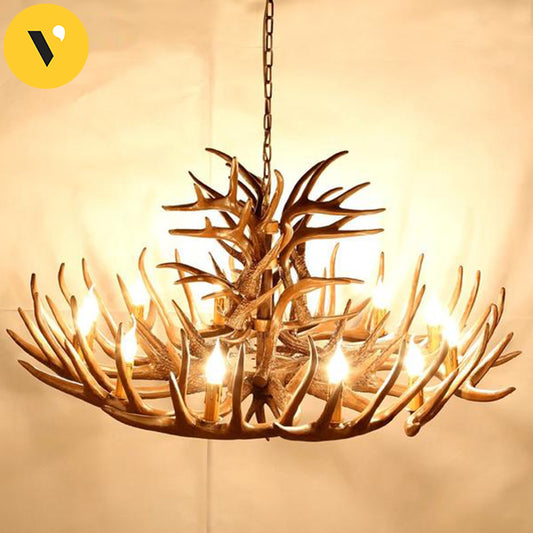 Rustic Caged Wooden Sphere Crystal Chandelier