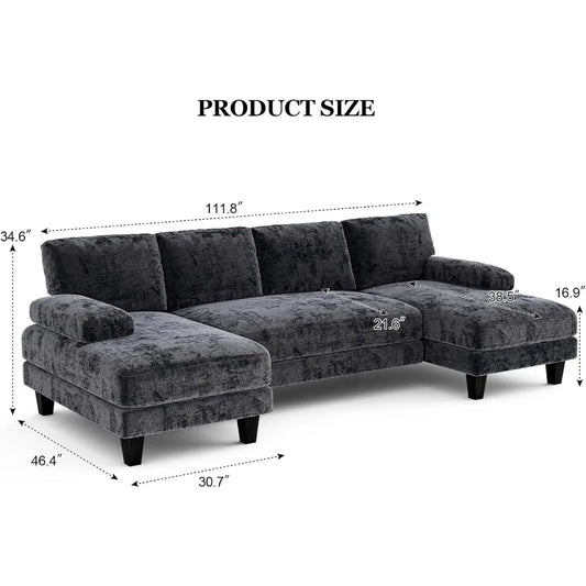 U-Shaped Sectional Sofa for Living Room – 111 Inch Modular Couch with Double Chaise, Large Lounge Sofa for Apartments