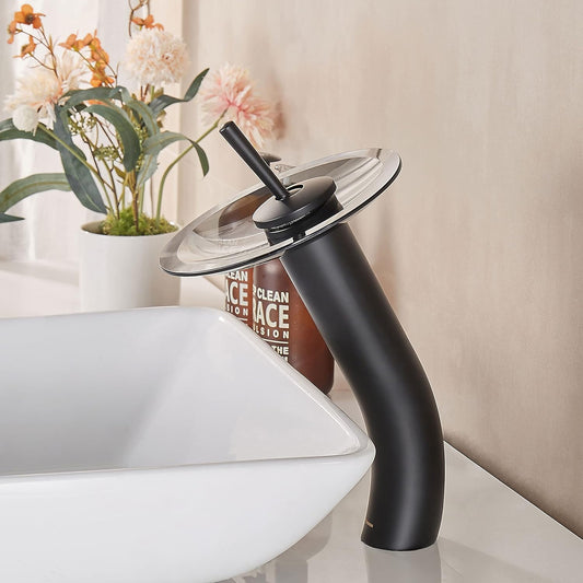 Tall Waterfall Bathroom Faucet Brass Single Handle Vessel Sink Faucet