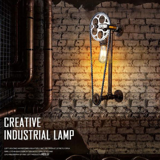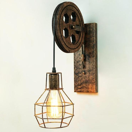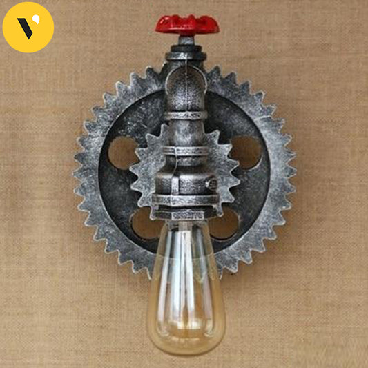 Steampunk Industrial Pulley Wheel Wall Lamplight
