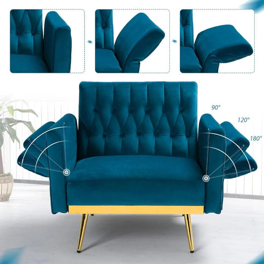Velvet Accent Chair with Adjustable Armrests & Backrest – Tufted Lounge Recliner Armchair with Ottoman & Pillow