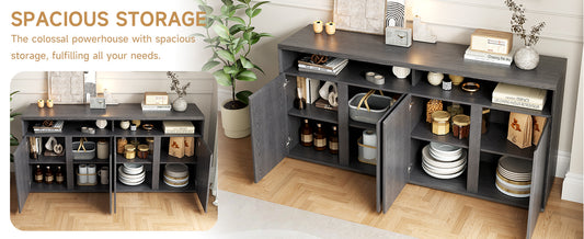 Vintage 63" Black Buffet Cabinet 4-Door Kitchen Storage, Coffee Bar, Console & Display Cabinet