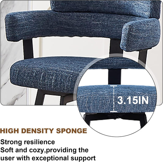 24" Counter Height Bar Stools Full Back Linen Upholstery (Set of 2)