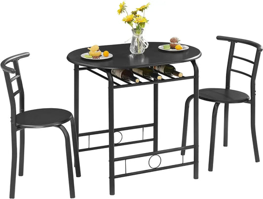 3-Piece Round Dining Table Set Space-Saving Kitchen & Breakfast Nook Set with Wood Grain Tabletop & Built-in Wine Storage