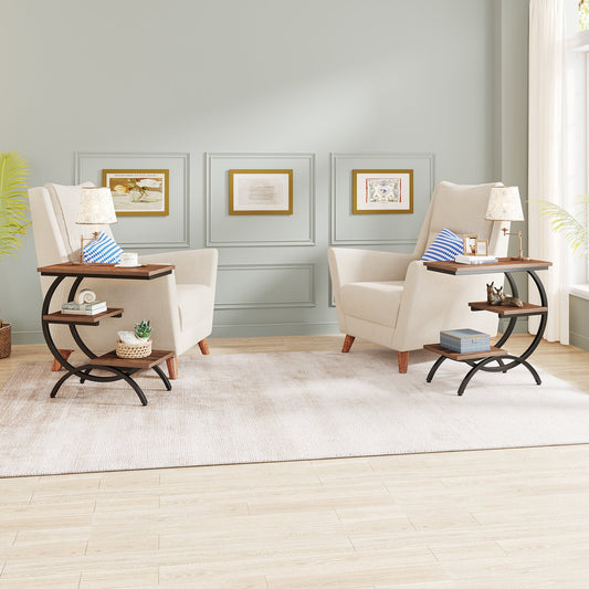 25" Nightstand with Charging Station Wood Bedside Table w/ 2 Drawers