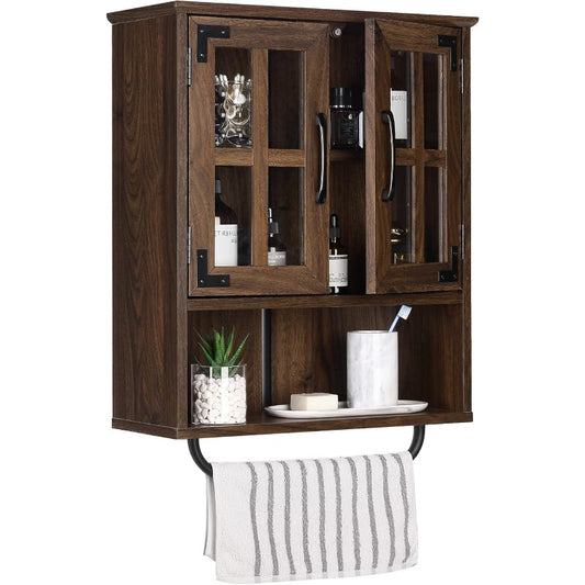 3-Tier Vintage Farmhouse Wood Wall Cabinet Cross Glass Doors