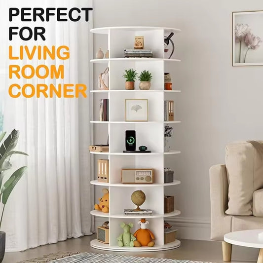 7-Layer Rotating Shoe Rack 360° Vertical Shoe Display, White Storage Tower