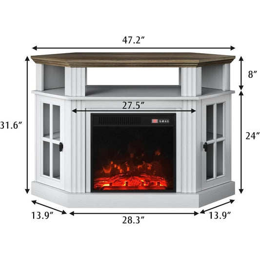 Corner Entertainment Center with Fireplace Fits 55" TV