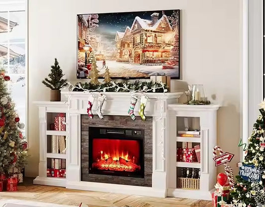 Electric Fireplace with Mantel & Cabinets, Fireplace TV Stand