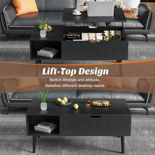 Lift-Top Coffee Table Rising Desk with Storage for Living Room
