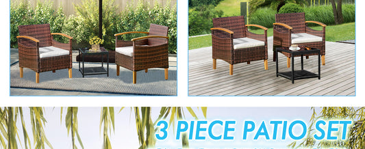 3-Piece Outdoor Patio Furniture Set – All-Weather Rattan Sectional Sofa with Washable Cushions & Glass Coffee Table