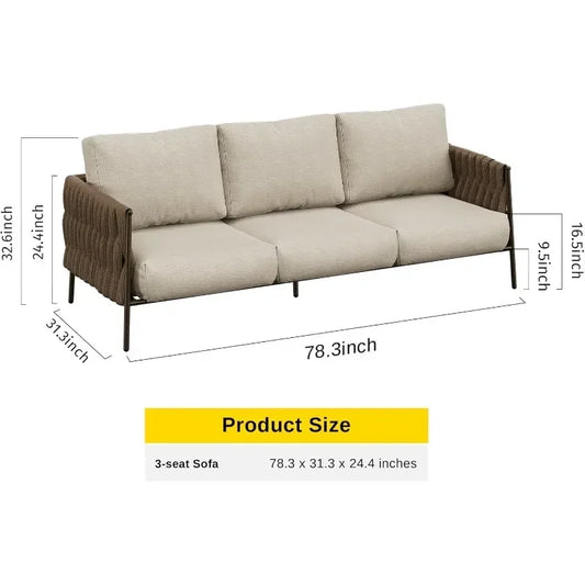 Life Chatter Outdoor Sofa - 3-Seat Modern Patio Furniture with Waterproof Thick Cushions & Deep Seating