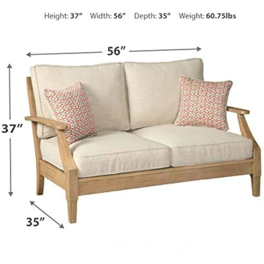 View Coastal Outdoor Loveseat – Eucalyptus Frame with Beige Cushions for Patio & Garden